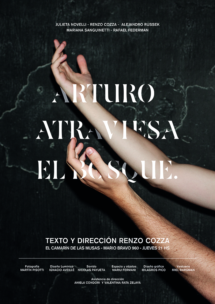 Imágenes de un bosque, el ruido de los insectos, una rama que se rompe, la ropa de otros, la noche que se hace larga, un poco de whisky, un gesto que es de todos, textos que circulan en el aire, voces que vienen de la ficción, besos de la realidad y la sensación de algo que se repite. El bosque gira sobre Arturo y en los otros radica la posibilidad de encontrarse.
